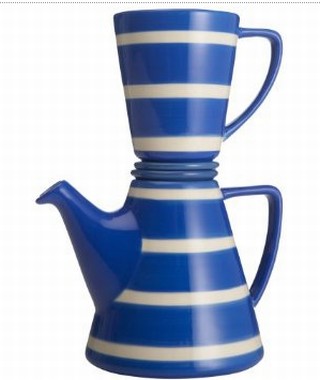 his darling Signature 4-piece Tea-for-One Set in Blue & White Stripes is a great way to steep, keep hot and enjoy your tea. The set includes a small ceramic tea-pot, mug, ceramic infuser and a ceramic teapot lid. The ceramic infuser has small holes to allow water through for ideal steeping, while holding the tea leaves in.